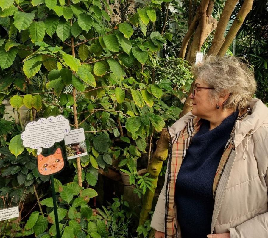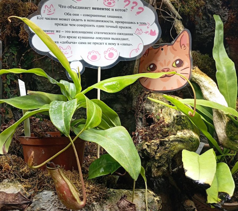 Любуясь цветущими азалиями, посетители гуляли по оранжереям, разыскивая «кошачьи» растения по специальным табличкам, и ориентировались в пути с помощью сигнальных карточек.