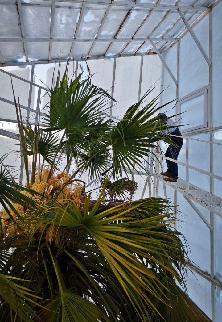 – Наш экземпляр высотой почти 24 метра. В 2024 и 2025 годах была проведена двухэтапная реконструкция купола, так как старый купол был пальме уже тесен. Увеличение высоты и пространства над пальмой позволило ей нарастить новые листья, а за увеличение инсоляции пальма подарила нам в этом году 12 соцветий. На одном ее соцветии расцветает более 130 тысяч цветков, цветочки мелкие – около 3 мм в диаметре, – рассказали сотрудники Ботанического сада ТГУ.