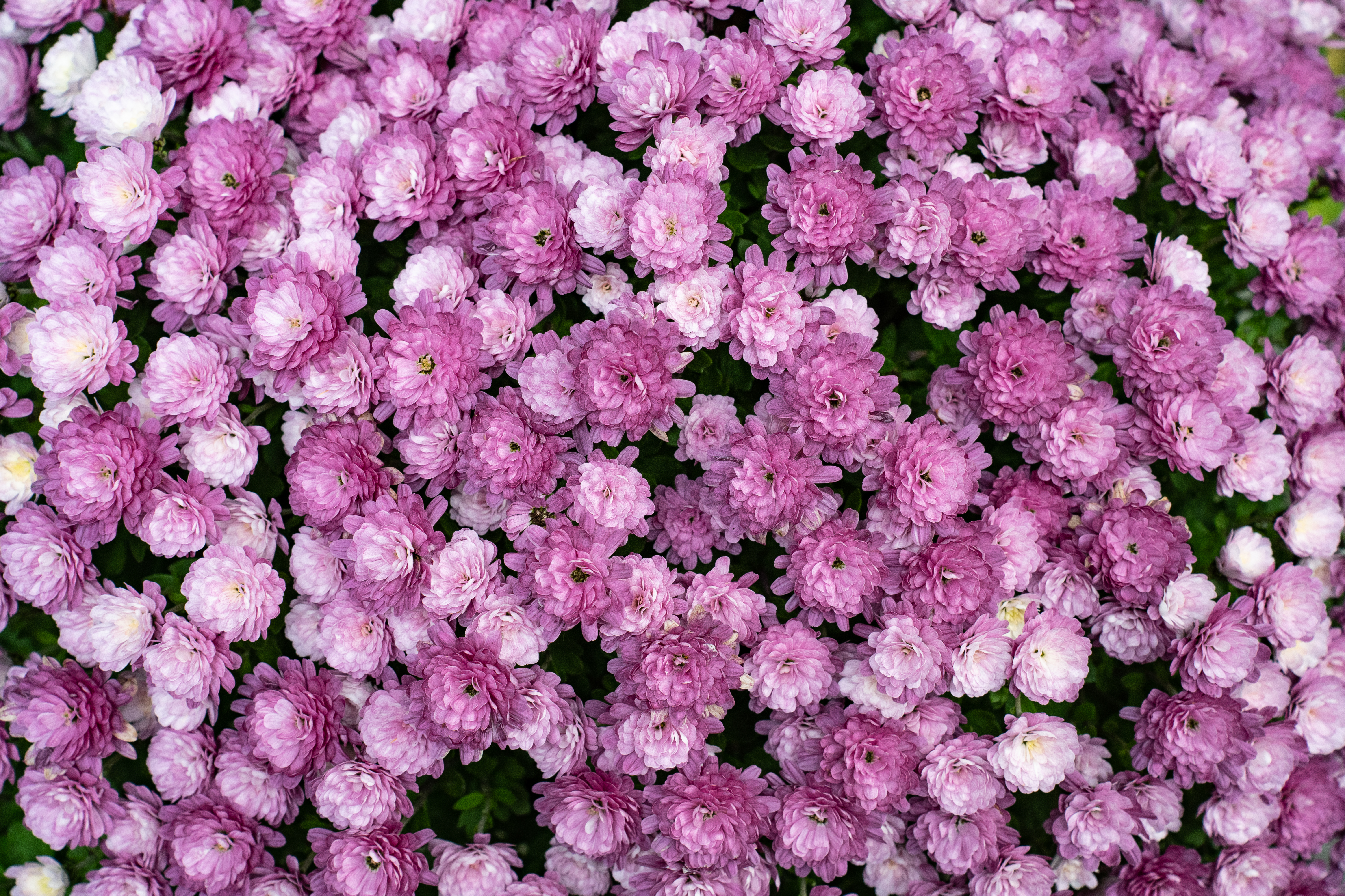 Первые хризантемы начинают цвести в августе, основная часть сортов – в сентябре, но данные сроки могут меняться в зависимости от погодных условий года. Сейчас можно увидеть хризантемы раннего и среднего сроков цветения; простые и махровые; мелкоцветковые, среднецветковые и крупноцветковые. Эффектно смотрятся как сорта хризантемы мультифлора, образующие цветущий шар, так и сорта хризантемы корейской с крупными цветками.